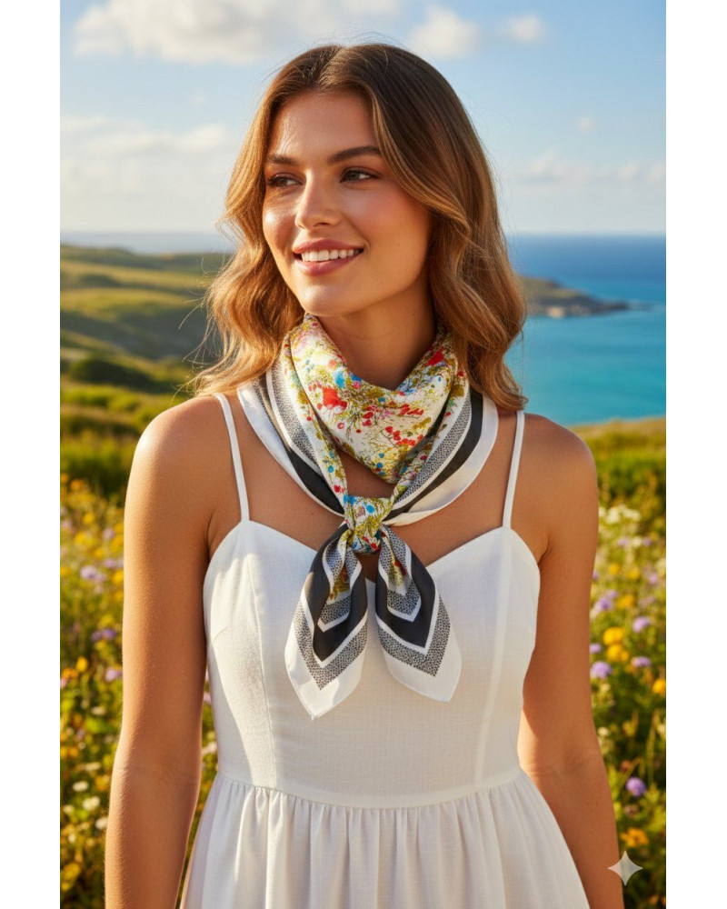 Foulard carré 70x70 en soie imprimé fantaisie - Chapo & Co