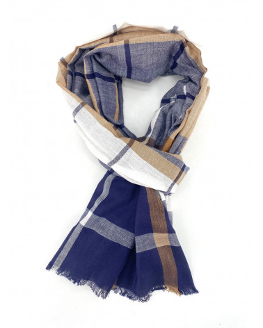 Foulard chèche en 100% coton indien motifs carreaux coloris bleu - Chapo & Co
