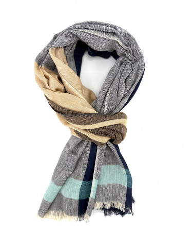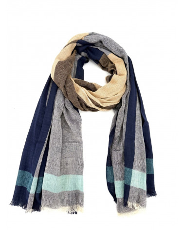 Echarpe en coton indien aux teintes naturelles inspirées de la terre et de la nature.