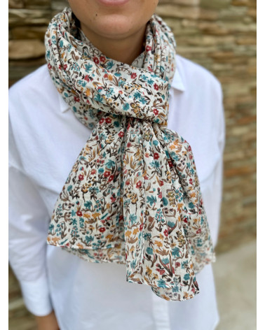 Echarpe en coton indien aux teintes naturelles inspirées de la terre et de la nature.