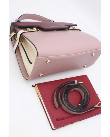 Sac à main chic bicolore à bandoulière coloris rose et bordeaux